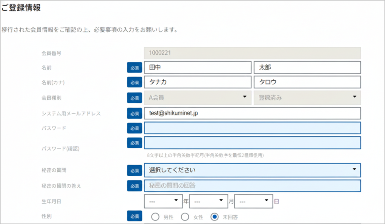 ③移行された会員情報をご確認の上、必要事項の入力をお願いします。